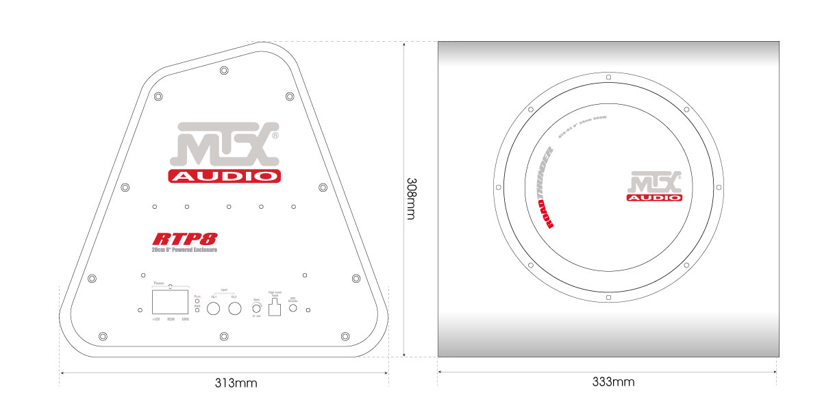MTX Audio RTP8 – aktywna skrzynia basowa 8" z wzmacniaczem Class-D 120 W RMS